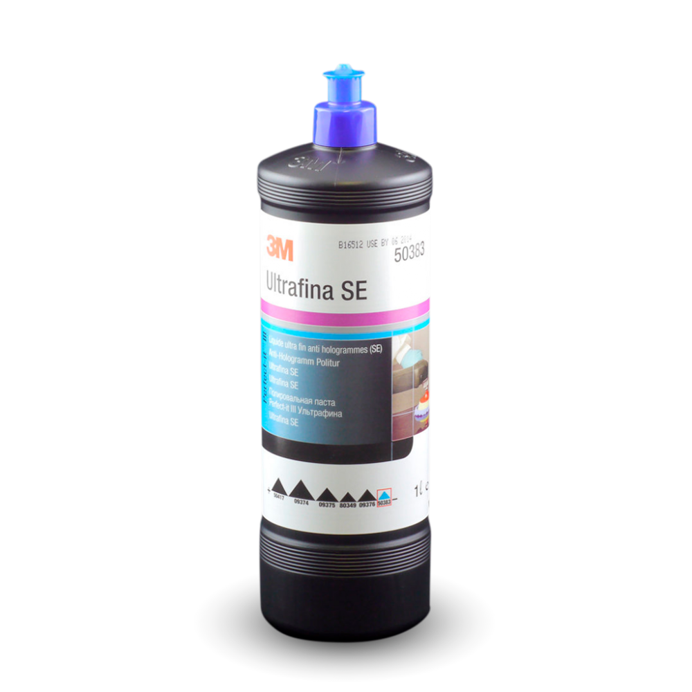 Антиголограммная полировальная паста 3М - 50383 Ultrafina SE используется для быстрого и эффективного удаления «голограмм» на темном лаке автомобиля. Полироль 3М Ультрафина 50383 предназначена для удаления микротонкой риски и голограмм, а также для придания дополнительного глянца ремонтным и заводским покрытиям. Рекомендуется наносить полировальную пасту при помощи полировальных машин (1500-2500 об/мин).