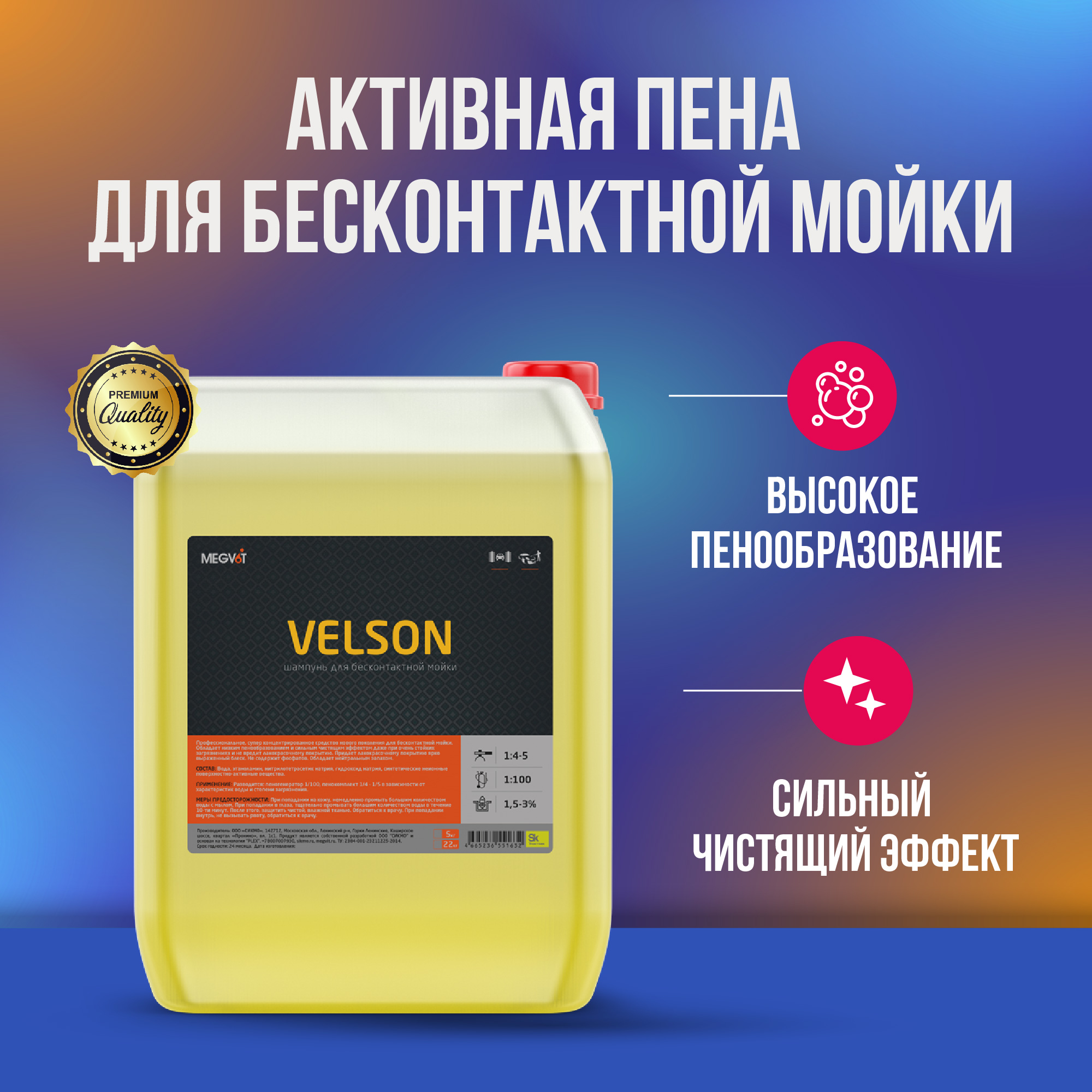 Профессиональная активная пена нового поколения для бесконтактной мойки автомобилей.