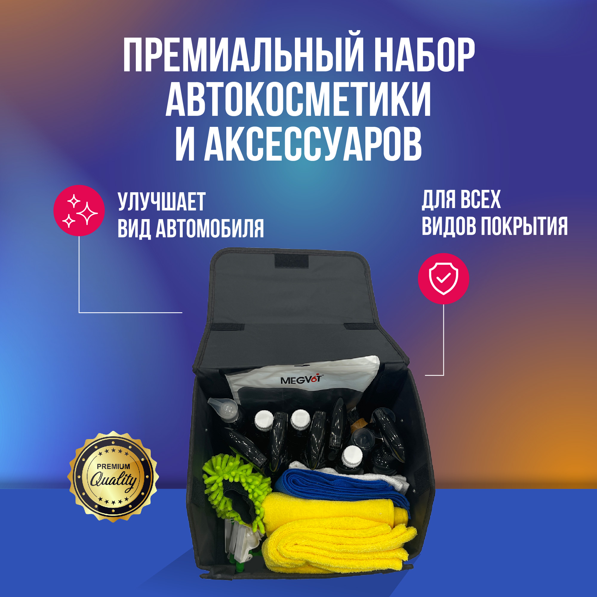 Megvit премиальный набор автокосметики и аксессуаров (29 товаров)