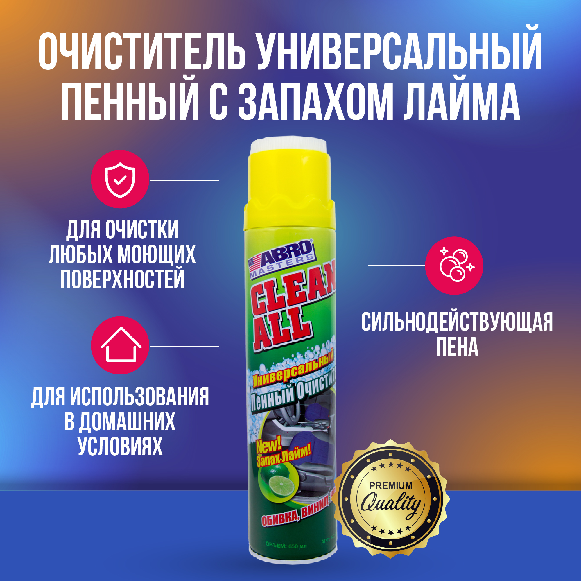 Abrо очиститель универсальный пенный с запахом лайма 650 мл
