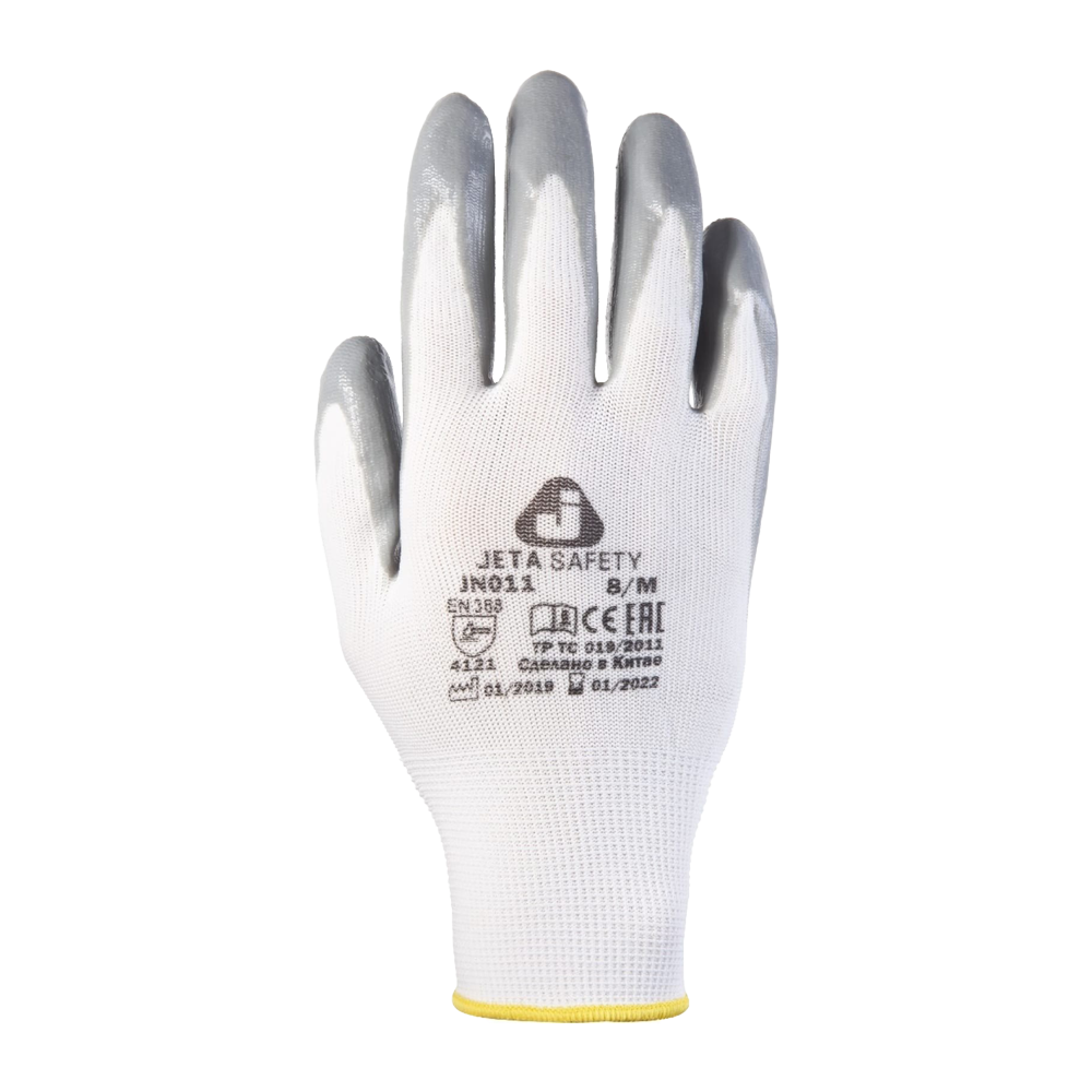 Jeta Safety JN011 перчатки серые из полиэфирной пряжи c нитриловым покрытием, размер L
