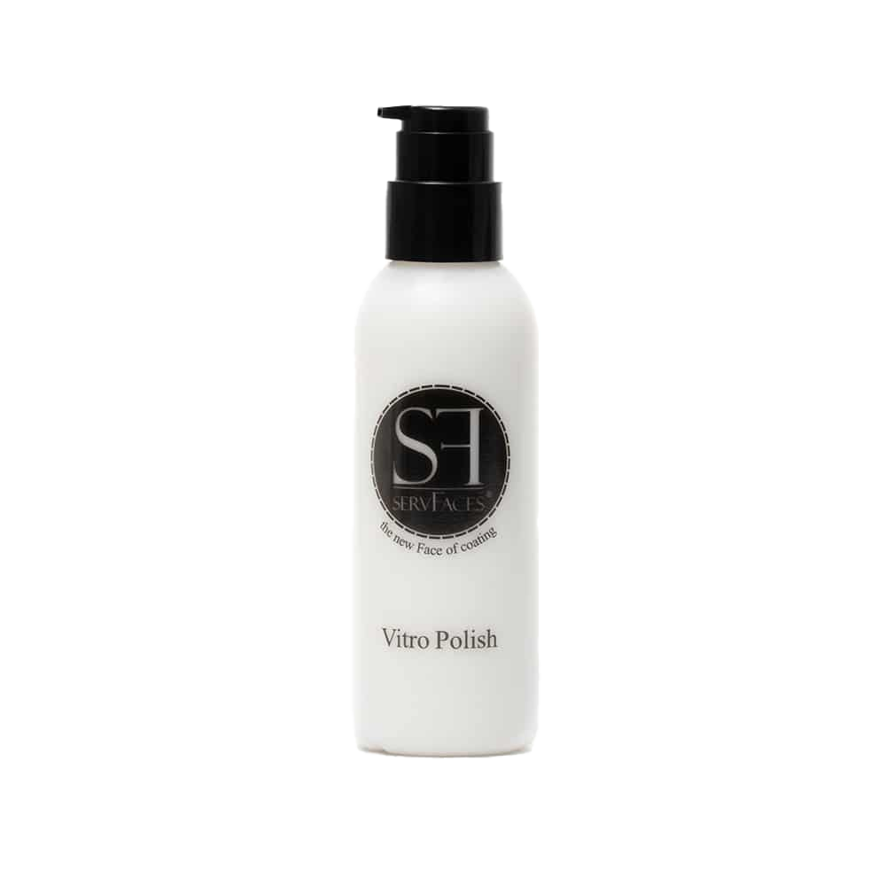 Vitro Polish — специализированное чистящее средство для глубокой очистки стеклянных поверхностей. Продукт эффективно удаляет минеральные отложения и подготавливает стекло к нанесению уплотнителей.